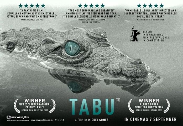 Tabú (Dir: Miguel Gomes, 2012) La película se divide en dos partes claramente diferenciadas. En la primera, situada en Lisboa, seguimos a Pilar, una mujer de convicciones sociales que se involucra en los últimos días de su vecina Aurora, una anciana excéntrica y solitaria. La segunda parte nos traslada al África colonial portuguesa de los años sesenta, donde se revela un episodio del pasado de Aurora, marcado por un romance prohibido y la tensión latente de la vida en las colonias. La mezcla perfecta entre melancolía, humor y crítica. Tabú entrelaza presente y pasado para hacer una reflexión sobre la memoria, el deseo y las huellas del colonialismo.